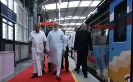 कोच्चि,प्रधानमंत्री नरेंद्र मोदी ने केरल में कोच्चि मेट्रो रेल परियोजना के पहले चरण का उद्घाटन करते हुए कहा कि अत्याधुनिक सुविधाओं से युक्त यह परियोजना बदले भारत की तस्वीर प्रस्तुत करती है। उन्होंने कहा मौजूदा समय की शहरी जरूरतों में तीक्र यातायात सुविधाओं का विकास प्रमुख है। कोच्ची मेट्रो परियोजना को मेक इन इंडिया विजन का एक उदाहरण बताते हुए उन्होंने कहा कि इस परियोजना में इस्तेमाल होने वाला 70 फीसदी सामान भारत में बना है। इस अवसर पर केरल के मुख्यमंत्री पिनराई जियन और मेट्रो मैन ई. श्रीधरन भी मौजूद थे।
