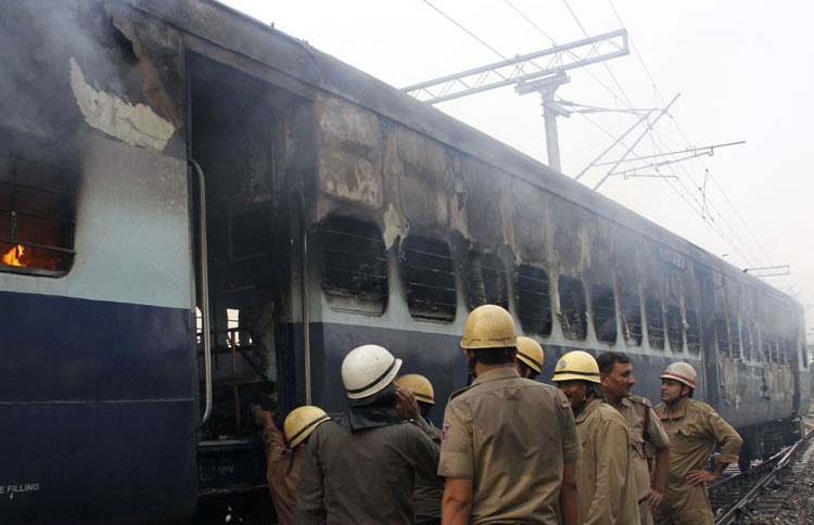 आनंद विहार पर खड़ी रीवा एक्सप्रेस की दो खाली बोगी में लगाई आग