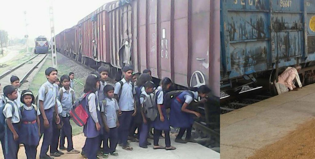 गाडियों के नीचे से निकलते हैं स्कूली बच्चे