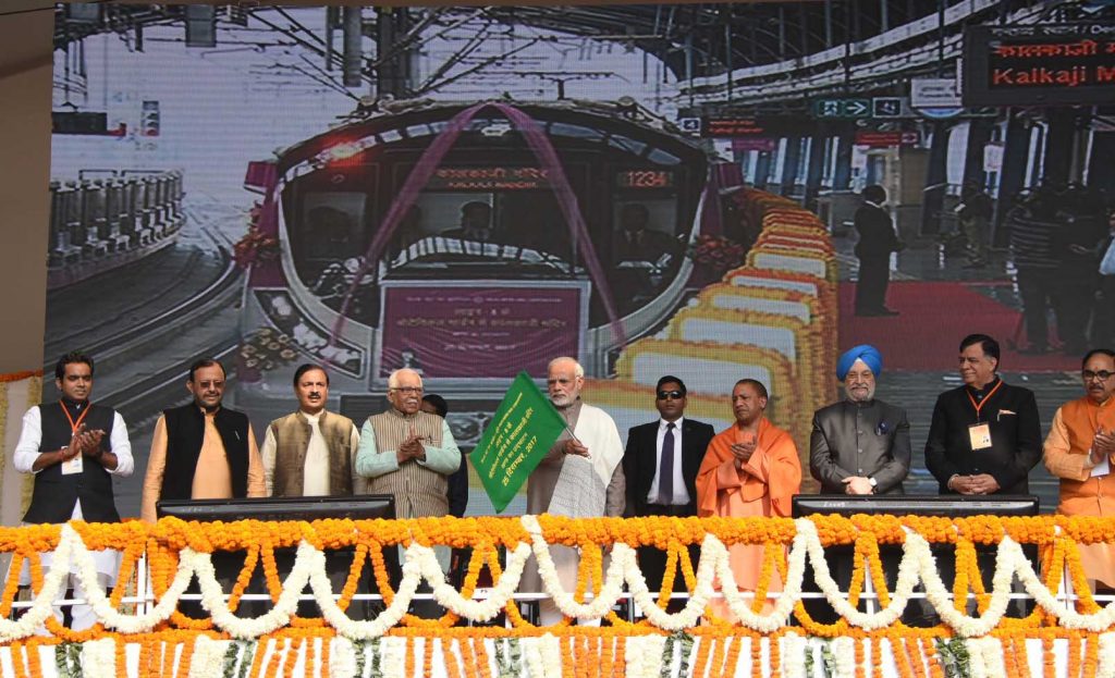 नई दिल्ली, मंगलयान और एक साथ 104 उपग्रह अंतरिक्ष में भेजने के बाद आज भारत ने जमीन पर भी इतिहास रच दिया। दिल्ली में बिना ड्रावर वाली मेट्रो (ड्राइवरलेस) ट्रेन दौड़ पड़ी। भारत अमेरिका के साथ अपने पड़ोसी देश चीन के बरक्स खड़ा हो गया है, जहां इस ड्राइवरलेस ट्रेन की शुरुआत हुई है। पूर्व प्रधानमंत्री अटल बिहारी वाजपेयी के 93वें जन्मदिवस पर प्रधानमंत्री नरेंद्र मोदी ने देश को यह सुनहरा तोहफा भेंट किया। नोएडा में हुए शुभारंभ कार्यक्रम में मोदी ने उत्तर प्रदेश के मुख्यमंत्री योगी आदित्यनाथ के साथ बॉटनिकल गार्डन मेट्रो स्टेशन पर बटन दबाकर उद्घाटन किया। पहले फेज के तहत यह ट्रेन कालकाजी मंदिर तक चलेगी। मोदी ने इस मेट्रो में ओखला बर्ड सेंचुरी तक सफर भी किया। यह मजेंटा लाइन का तोहफा दिया। मेट्रो नोएडा और फरीदाबाद के बीच दूरी को कम करेगी। इससे लोगों का पैसा और समय दोनों ही बचेंगे। गौरतलब है कि 24 दिसंबर, 2002 को अटल बिहारी वाजपेयी देश की मेट्रो रेल के पहले यात्री थे। आज 15 साल पूरे होने पर उनके ही जन्म दिन पर ड्राइवर लेस मेट्रो चलाई गई।