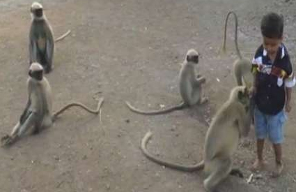 समर्थ का गांव राजधानी बंगलुरु से चार सौ किलोमीटर दूर है। हर रोज समर्थ के घर के नजदीक के खेतों के बंदर गांव में उसके घर के बाहर जमा हो जाते हैं। वह बच्चे के सिवाय घर के किसी दूसरे सदस्य के करीब नहीं जाते। बंदर हर दिन दो बार, सुबह व शाम बच्चे को देखने के लिए आते हैं, बच्चा भी अपना खाना उन्हें खिलाता है। समर्थ अपने छह महीने के छोटे भाई के बजाय बंदरों के साथ ज्यादा समय बिताता है।
