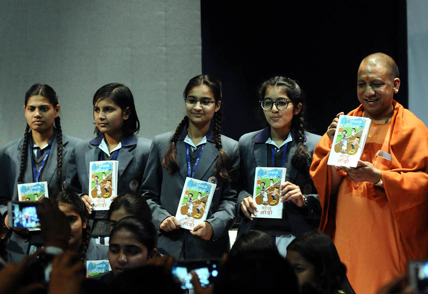 मोदी की पुस्तक इग्जाम वा‎रियर्स का हिंदी में अनुवाद हुआ,योगी ने विमोचन किया