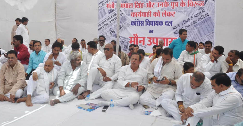 कांग्रेसजनों का मौन उपवास,राज्यपाल को ज्ञापन, मंत्री रामपाल और बेटे पर एफआईआर दर्ज हो,महिला अत्याचारों पर रोक लगे