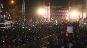 मां नर्मदा का पूजन कर राहुल ने शुरू किया रोड शो,रामपुर के बंदरिया तिराहे पर पुष्पवर्षा कर स्वागत