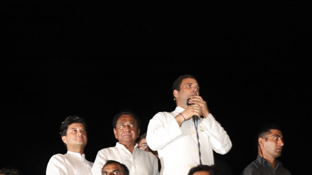 राहुल का काफिला पुराने बस स्टेंड, तीन-पत्ती चौराहे से होता हुआ मालवीय चौक पहुंचा। यहां हजारों की संख्या में मौजूद कार्यकर्ताओं ने राहुल आ आत्मीय स्वागत किया। वाहन के उपर खड़े राहुल कार्यकर्ताओं को निर्देश भी देते रहे। इस दौरान उनके साथ प्रदेश अध्यक्ष कमलनाथ, ज्योतिरादित्य सिंधिया, सुरेश पचौरी, कांतिलाल भूरिया, अजय सिंह राहुल मौजूद रहे।