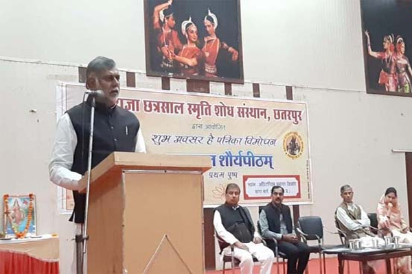 छतरपुर,महाराजा छत्रसाल स्मृति शोध संस्थान द्वारा शहर के किशोर सागर स्थित ऑडिटोरियम में आयोजित छत्रसाल शौर्यपीठम् पत्रिका के विमोचन अवसर पर केन्द्रीय पर्यटन मंत्री प्रहलाद पटेल ने कहा कि केन्द्र सरकार मऊसहानियां के समीप स्थित महाराजा छत्रसाल की विरासत को विकसित करने और इसे देश के पर्यटन नक्शे में शामिल करने जैसे हरसंभव कार्य करेगी। उन्होंने कहा कि महाराजा छत्रसाल स्मृति शोध संस्थान द्वारा जनसहयोग से किए गए इस स्थान के विकास का काम अनुकरणीय है। सरकार इस स्थान पर पर्यटकों को लाने और सुविधाओं को बढ़ाने का पूरा प्रयास करेगी।