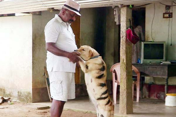 बंदरों से फसल बचाने के लिए कर्नाटक में किसान पालतू कुत्तों को बाघ के रंग में रंग रहे