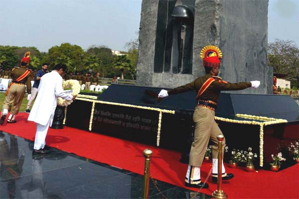नई दिल्ली, मुख्यमंत्री कमल नाथ ने नई दिल्ली में चाणक्यपुरी स्थित राष्ट्रीय पुलिस स्मारक पहुंचकर शौर्य शिला पर श्रद्धा-सुमन अर्पित कर शहीदों को नमन किया। सीमा सुरक्षा बल की टुकड़ी ने मुख्यमंत्री को गार्ड ऑफ ऑनर से सम्मानित किया।