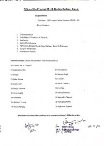 झाँसी,मेडिकल कॉलेज सर्जरी विभाग के JR 2 डॉ अजहर खान की पत्नी डॉ सलमा खातून इंदौर में रेजिडेंट डॉक्टर है वो पहले से कोरोना पॉजिटिव थी। उनके सम्पर्क में आए उनके पति डॉ अजहर को कोरण्टाइन कर दिया। मेडीकल विभाग झाँसी में हड़कम्प दर्जनों डॉक्टर्स व उनके संपर्क आये सभी को कोरेण्टाइन करने आदेश दे दिए है।