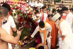 भगवान महाकालेश्वर की सवारी में पुलिस बैण्ड के बाद महाकाल का चांदी का ध्वज निकाला गया। इसके बाद सवारी निकली। सवारी के पीछे पांच मुखौटे एक रथ पर एवं हाथी पर चंद्रमौलेश्वर सवार होकर निकले। इधर,आज राज्यसभा सांसद ज्योतिरादित्य सिंधिया और पूर्व केंद्रीय मंत्री उमा भारतीबाबा महाकाल की शाही सवारी के दौरान रामघाट पर बाबा महाकालेश्वर का दर्शन, पूजन और आरती की।
