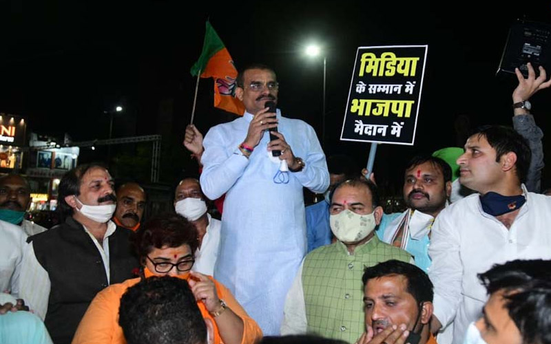 भोपाल, पत्रकार अर्नब गोस्वामी का कसूर सिर्फ इतना था कि उन्होंने पालघर में साधुओं की हत्या का मामला और अभिनेता सुशांत सिंह की कथित आत्महत्या के मामले को उठाया। तो जनमानस ने देखा कि महाराष्ट्र में किस प्रकार हत्या करने का प्रयास हो रहा है। सरकार सब मौन होकर देख रही है। कांग्रेस की अध्यक्ष सोनिया गांधी के इशारे पर पुलिस ने अर्नब गोस्वामी के घर जाकर उनके परिवार के साथ बत्तमीजी की। पत्रकारिता के चौथे स्तंभ पर संरक्षण के लिए भाजपा के लाखों कार्यकर्ताओं ने उनके सम्मान में देश में मीडिया के लिए साथ खडे होकर महाराष्ट्र सरकार का विरोध किया है। यह बात भारतीय जनता पार्टी के प्रदेश अध्यक्ष व सांसद विष्णुदत्त शर्मा ने पत्रकार अर्नब गोस्वामी की गिरफ्तारी के विरोध में रंगमहल चौराहा से आयोजित मशाल जुलूस को संबोधित करते हुए कही। मशाल जुलूस रंगमहल चौराहा से प्रारंभ होकर नेहरू प्रतिमा पर समाप्त हुआ।
