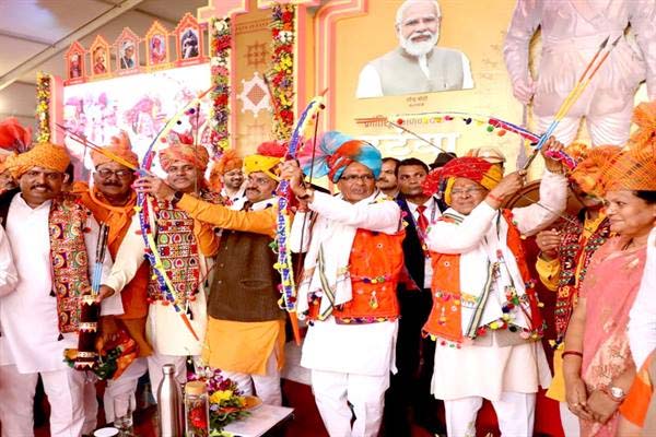 राज्यपाल पटेल एवं मुख्यमंत्री चौहान आज नेहरू स्टेडियम इंदौर में क्रांति सूर्य टंट्या मामा भील बलिदान दिवस पर राज्य स्तरीय कार्यक्रम में शामिल हुए। चौहान ने कहा कि आज यहाँ क्रांतिसूर्य जननायक टंट्या मामा के बलिदान दिवस पर राज्य स्तरीय कार्यक्रम कोई कर्म कांड नहीं बल्कि सामाजिक और आर्थिक क्रांति का शंखनाद है। मध्यप्रदेश की धरती पर जनजातीय कल्याण के संकल्प को पूरा भी किया जा रहा है। प्रदेश के 89 जनजातीय बहुल विकासखंडों में पेसा एक्ट लागू किया जा चुका है, जो जनजातीय समुदाय को जल, जंगल और जमीन का हक प्रदान करता है। मुख्यमंत्री ने कहा कि मैं पेसा एक्ट समझाने वाला मास्टर ट्रेनर हूँ। आज आप सबको ट्रेंड करने आया हूँ, जिससे हमारे जनजातीय भाई-बहन अपने अधिकारों को समझे और अपना एवं अपने गाँव को समृद्ध कर आत्म-निर्भर बनाये। प्रदेश में मास्टर ट्रेनर्स बना कर प्रशिक्षण देने का काम चल रहा है। प्रत्येक विकासखंड में 15-15 कोआर्डिनेटर बनाये जायेंगे। पेसा एक्ट के माध्यम से जनजातीय वर्ग की जिंदगी बदलने का काम करना है। यह महा अभियान है, मुख्यमंत्री श्री चौहान ने इसमें सभी को साथ मिल कर चलने का संकल्प भी दिलाया।