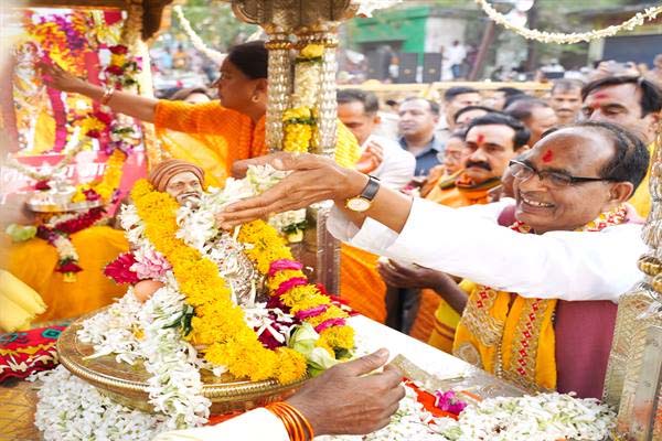 चौहान आज दतिया में माँ पीताम्बरा प्राकट्य महोत्सव एवं गौरव दिवस में शामिल हुए। राजस्थान की पूर्व मुख्यमंत्री श्रीमती वसुंधरा राजे सिंधिया एवं जिले के प्रभारी मंत्री सुरेश धाकड़ विशेष रूप से शामिल हुए। गौरव दिवस पर माई पीताम्बरा की भव्य रथ यात्रा नगर के विभिन्न मार्गों पर निकली। सभी अतिथियों ने रथ यात्रा में शामिल हो कर रथ को खींचा। जगह-जगह रथ यात्रा का पुष्प-वर्षा से स्वागत किया गया।