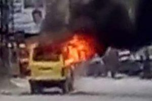 स्कूल वैन मे आग लगी, 11 बच्चे झुलसे